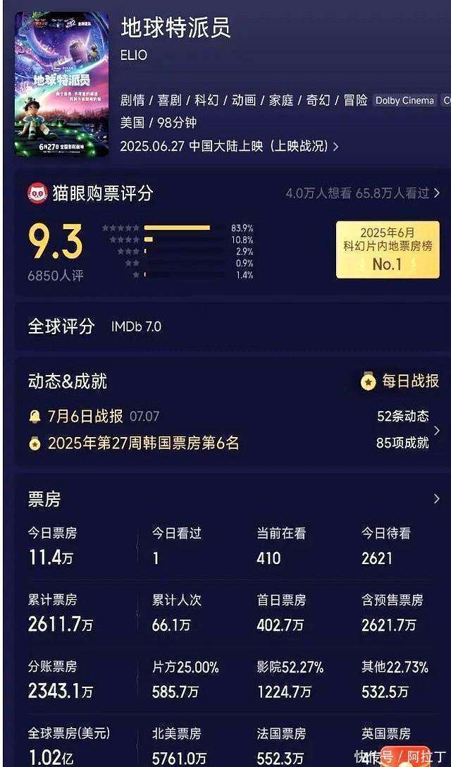 《地球特派员》在北好意思首周末的票房仅为2100万好意思元,这一收成平直刷新了皮克斯动画使命室有史以来的最差开画记录。