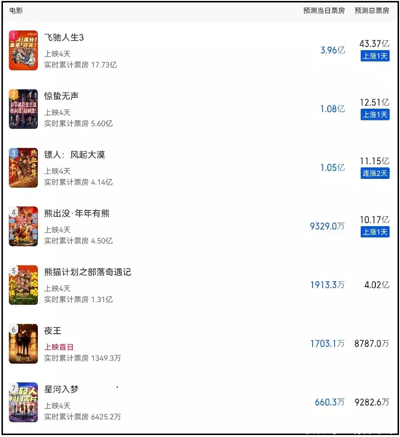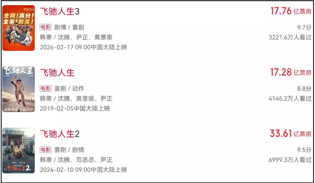 仅仅望望除了《奔驰3》除外,2026年其他春节档电影十几亿的瞻望票房,一经以为难过。