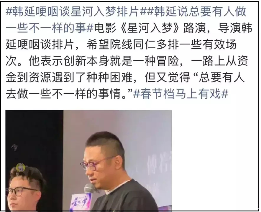 《银河入梦》是圭臬粉丝电影,靠近2026年最冷春节档,瞻望票房居然都没破亿,导演韩延路演抽噎了,两个主演眼眶都红了,再冷的春节档竞争依旧强烈,一着失慎,满盘齐输。
