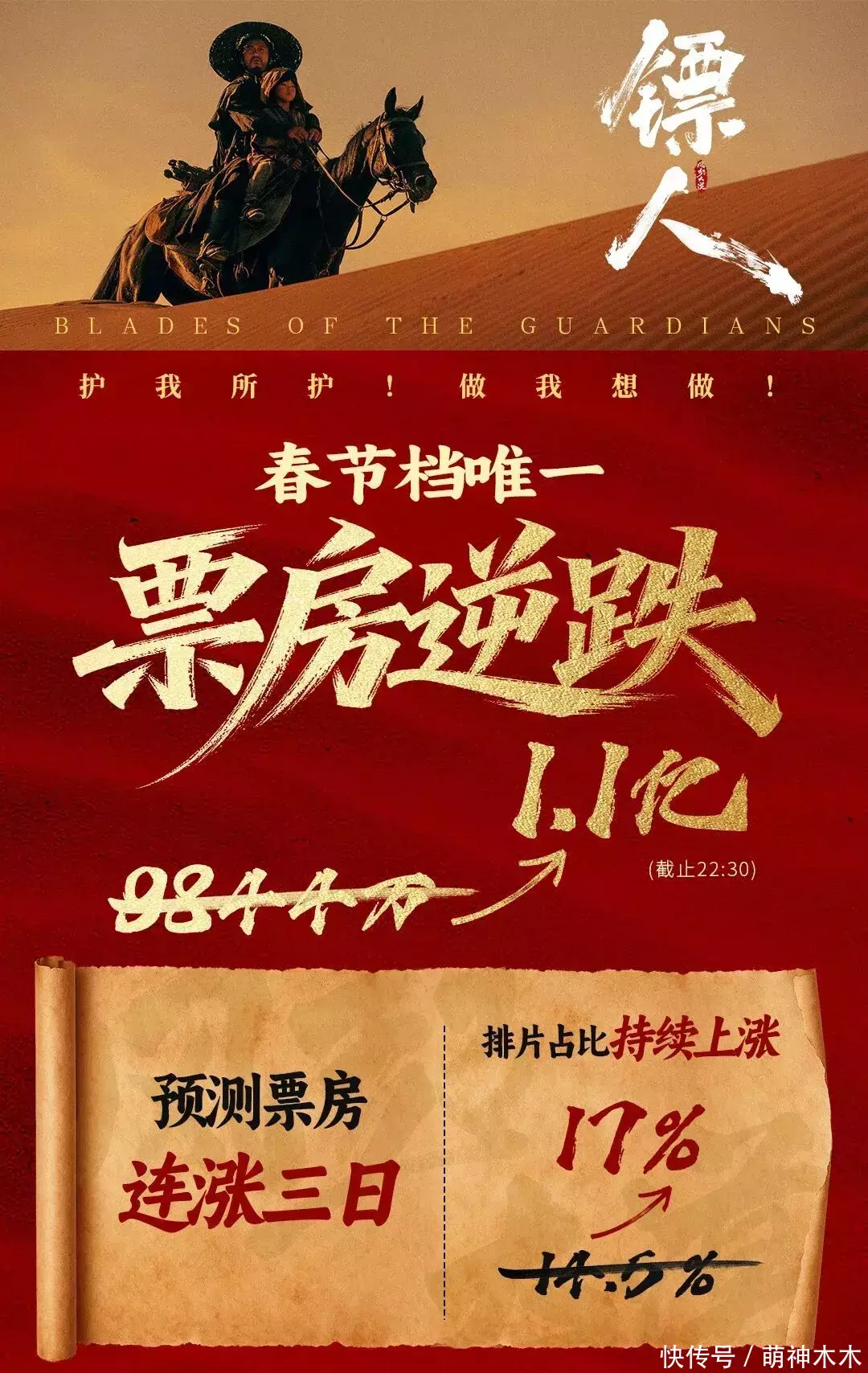 吴京主演的武侠大片《镖东谈主》是惟一日票房逆跌的春节档新片了,瞻望票房更是贯穿三天上调,不知谈还有莫得契机拿《流浪地球》脚本。