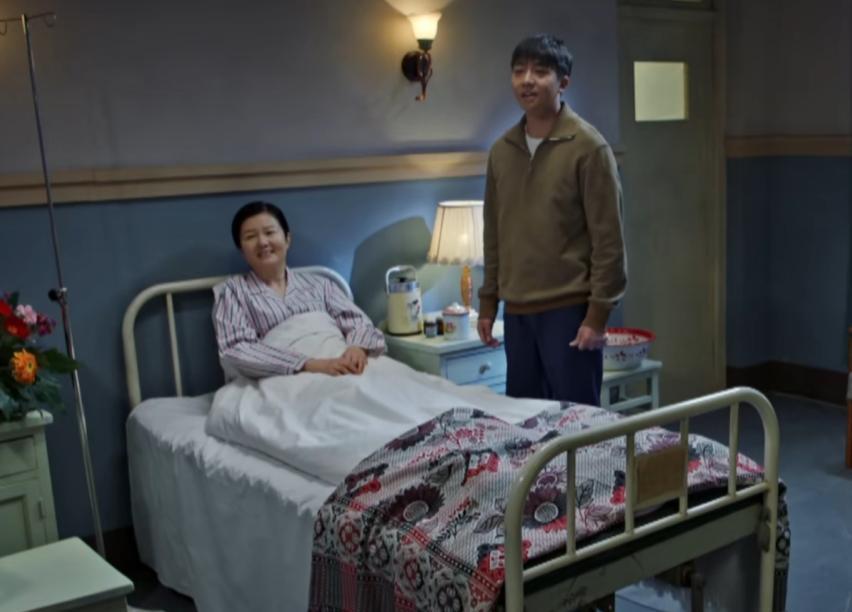 饰演王丽云饰演的男主母亲,在病床上的叮咛,句句透着慈祥。