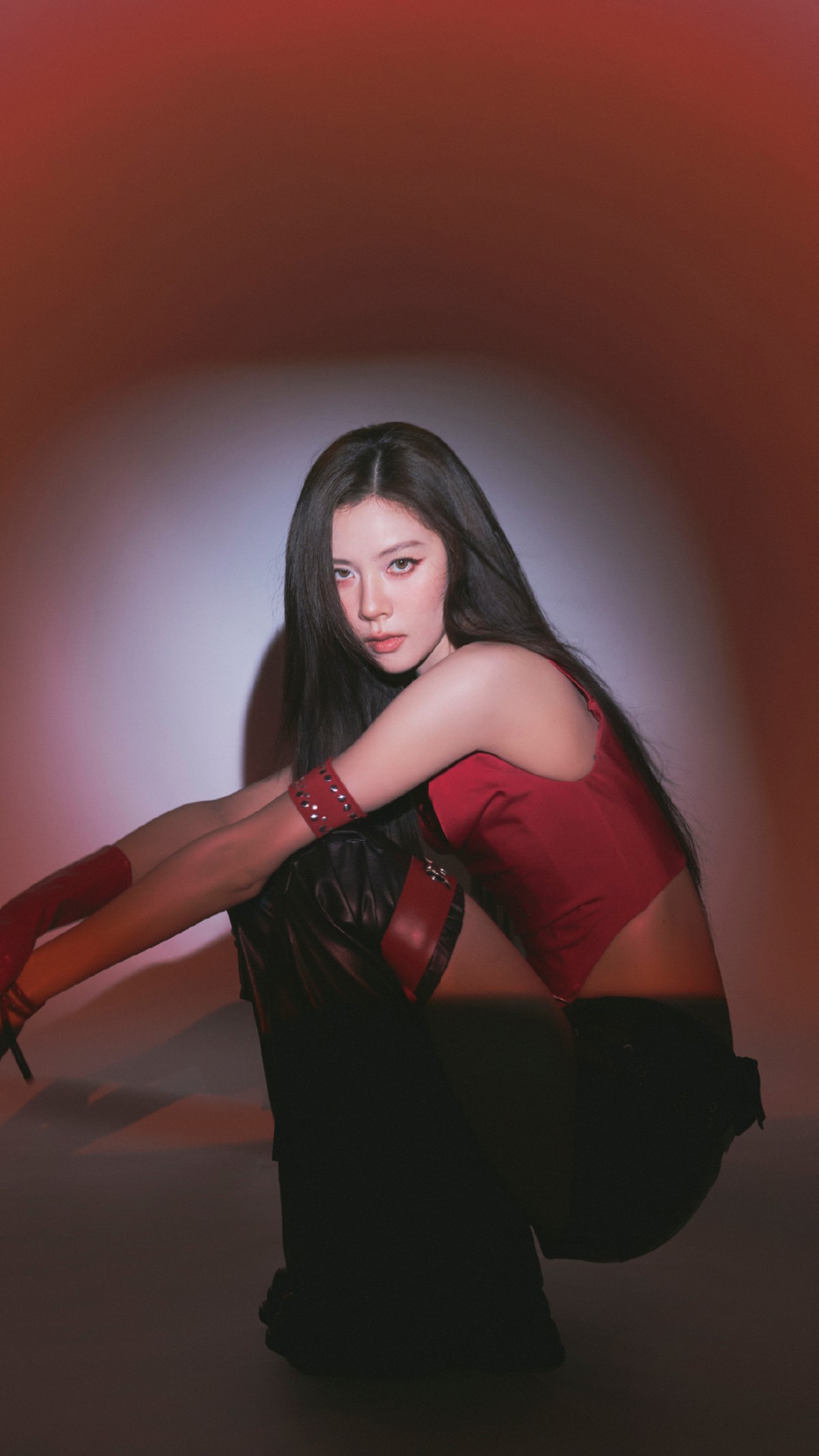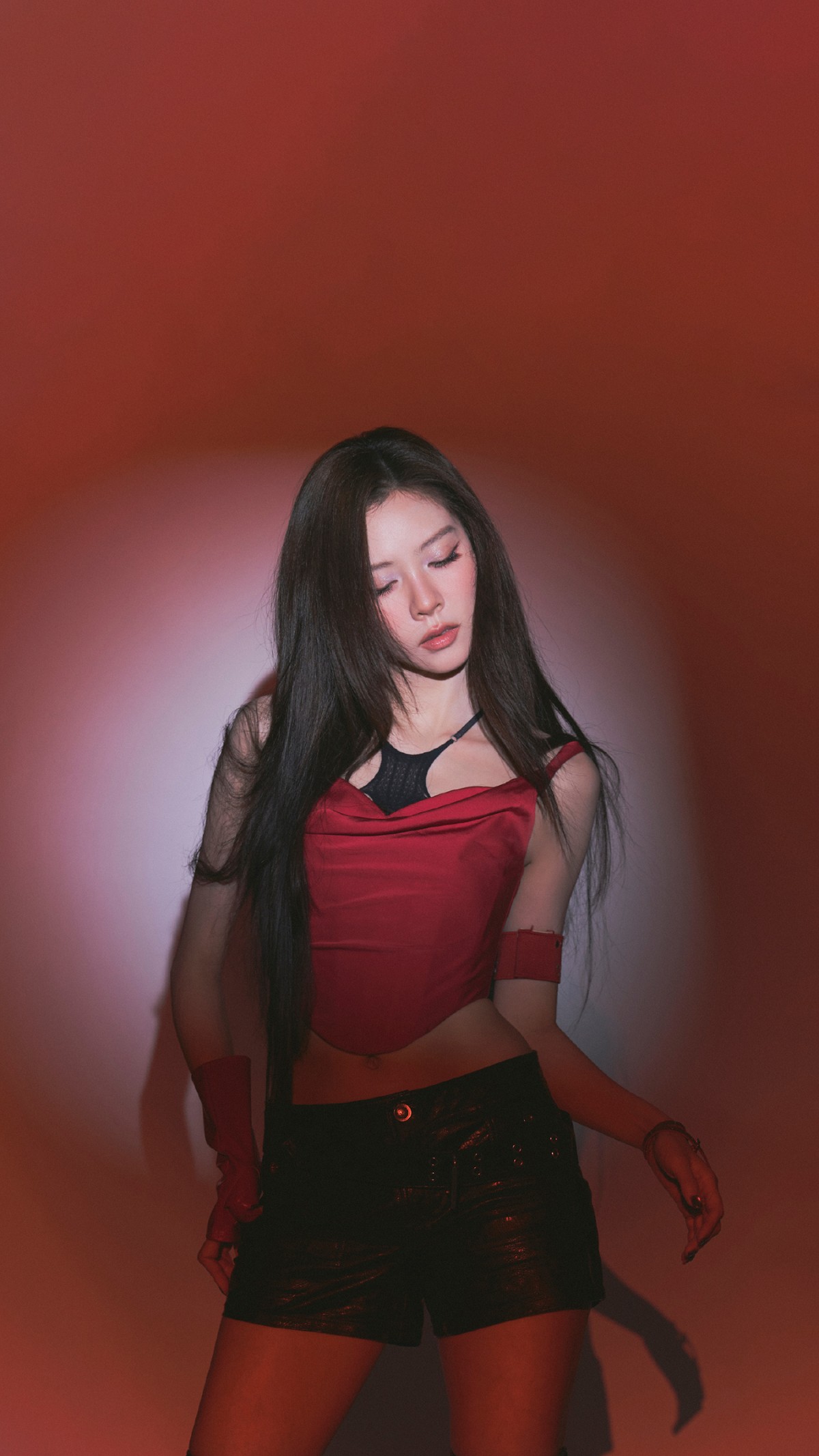 她的造型更是激勉了网友们的浓烈商酌。红黑截断皮裤搭配红色吊带与红手套,斗胆又先锋的穿搭,将她的长腿上风和飒直爽质展现得长篇大论,径直掀翻“辣我一大跳”的话题上升,让东谈主一眼便锁定舞台焦点,成为全场最宝贵的存在。