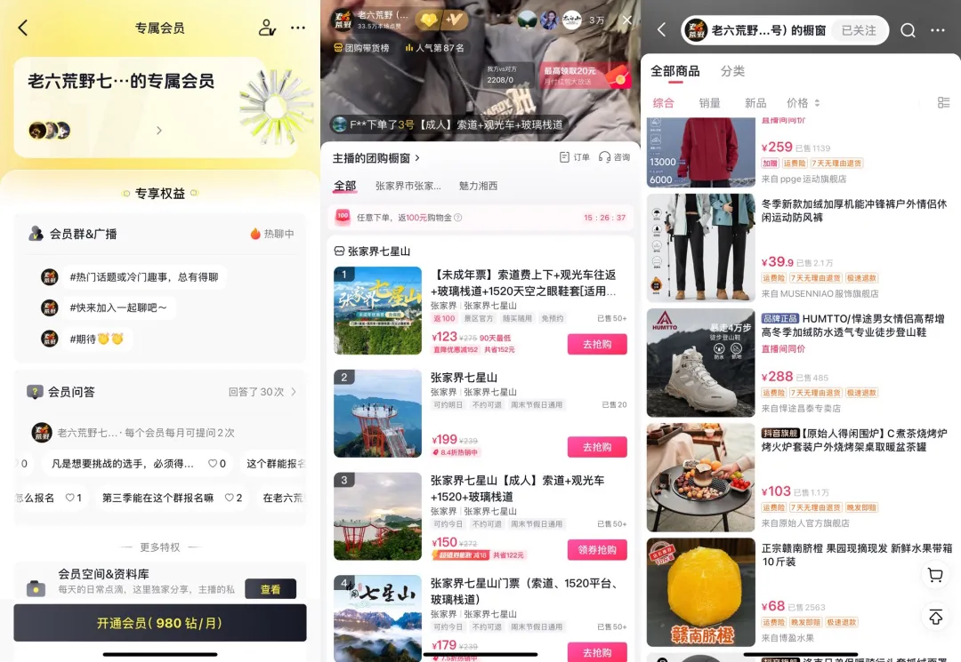 赛事收入概况通常上流。蓝鲸记者不雅察到,除冠名费外,老六荒原多个矩阵账号均挂出了包括多品牌户外居品、张家界景区门票在内的商品流畅;其还通达费了月费约980钻(合140元)的专属会员群,当今已有近400东谈主加入。