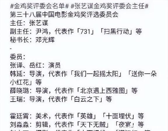这届金鸡奖的评审团着实全是张艺谋的老一又友,评委主任亦然他。