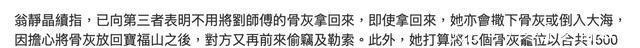 翁静晶示意协调他的局外人称,这些盗骨灰之东谈主用了至少一年的期间去踩点,况且偷盗的经由也不简便。由于这些有钱东谈主、名东谈主的骨灰龛王人在较高的位置,况且占位很大,他们要爬到很高的位置,抬下安详的石碑拿走内部的骨灰,再把石碑收复且归。这工程本就不简便,多样老本至少也要50万,如今一分钱王人拿不到,当然就心生不悦,故此特意向翁静晶催讨。没念念到翁静晶作风坚贞,看来即是猝然无功一场空。