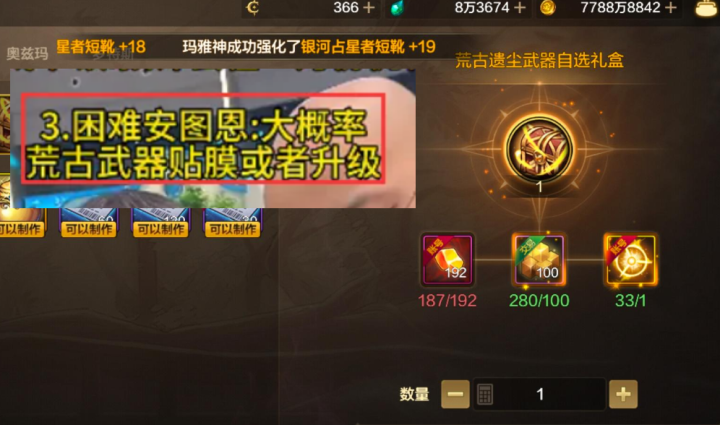 这升级后的荒古火器的属性细目会有不小的擢升,抗魔值也会大幅度加多,这些各人又能加多3000以上的抗魔了。是以说还莫得荒古火器的玩家亦然要攥紧时间打团攒红豆了,别再用红豆开罐子了,否则等艰难安图恩上线后还莫得荒古火器的话就要逾期其他玩家一大截了。