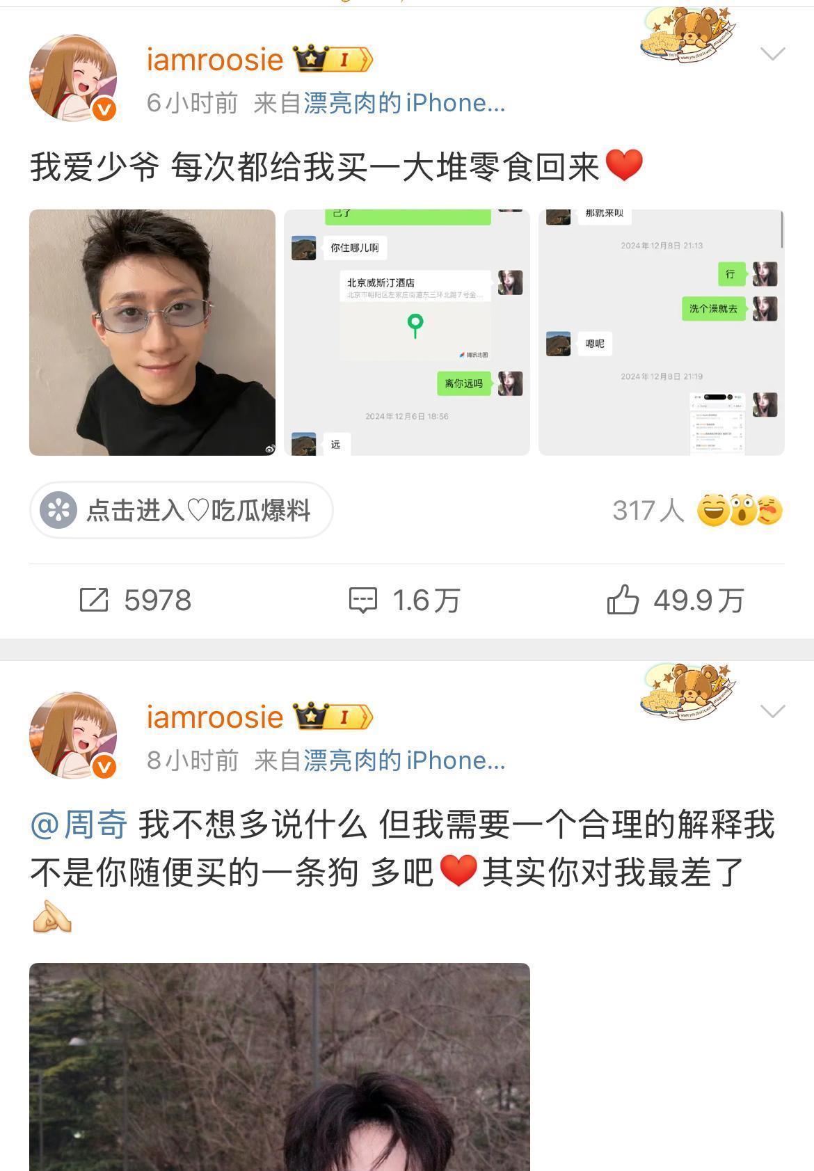 开年大瓜!十余名顶流遭秘要爆料 鹿晗责任室区块链取证硬刚训斥2026年开年文娱圈就爆出重磅猛料。1月2昼夜深至3日凌晨,微博用户“iamroosie”(司晓迪)密集发布动态,宣称与鹿晗、范丞丞、林更新等十余名男艺东谈主存在秘要相干,还晒出疑似鹿晗的“床照”和聊天纪录截图欧洲杯体育,致使放出“所有这个词顶流王人睡罢了,东谈主生莫得缺憾”的惊东谈主言论。
