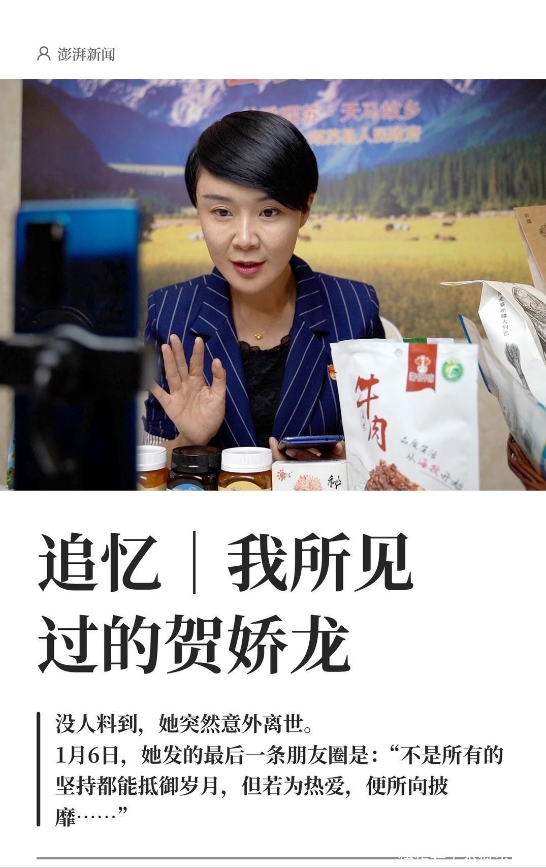 贺娇龙虽已离开,但她创立的“品尝新疆”品牌仍在运转,带动四百余家企业转型电商,接续开释影响力。